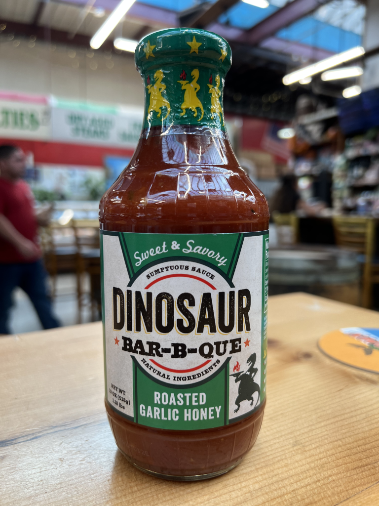 Dinosaur Bar-B-Que’s Roasted Garlic Honey BBQ Sauce is straight up delicious. Tomato forward, but unlike so many sauces, it has that magical taste of FRESH tomatoes (way more difficult to achieve than you’d think). The honey is subtle and very welcome when compared to some sauces that rely too much on sugar for sweetness. Here, all the flavors flow in complete harmony.