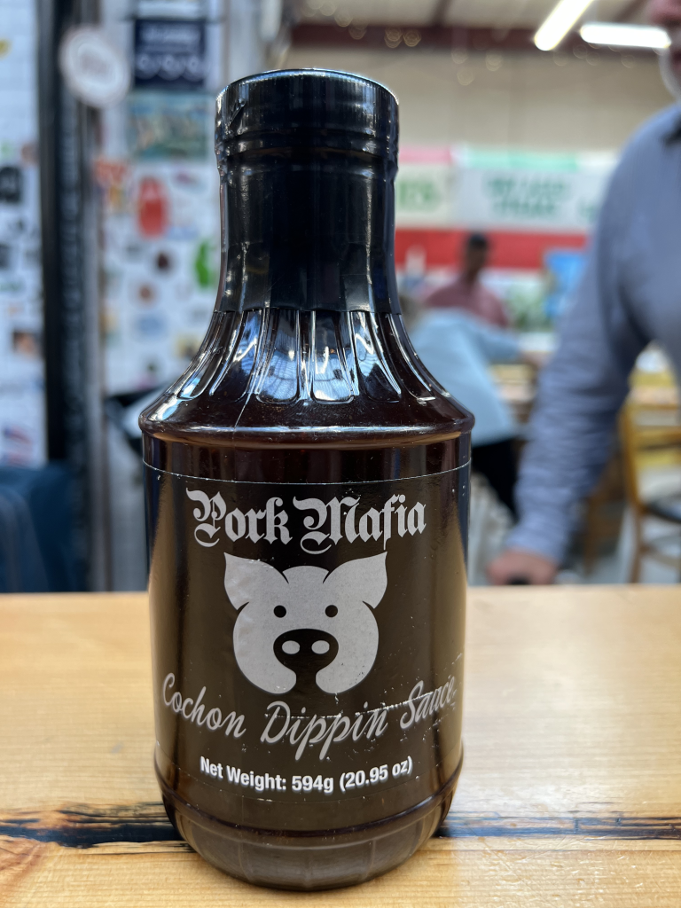 Exemplary and Excellent. Pork Mafia’s Cochon Dippin’ Sauce is a fantastic and delicious marinade, baste, barbecue sauce, and also that rare versatile sauce for just unscrewing the cap and dipping, then double dipping, nearly anything into. (Just keep your fingers out of it – Paul!).